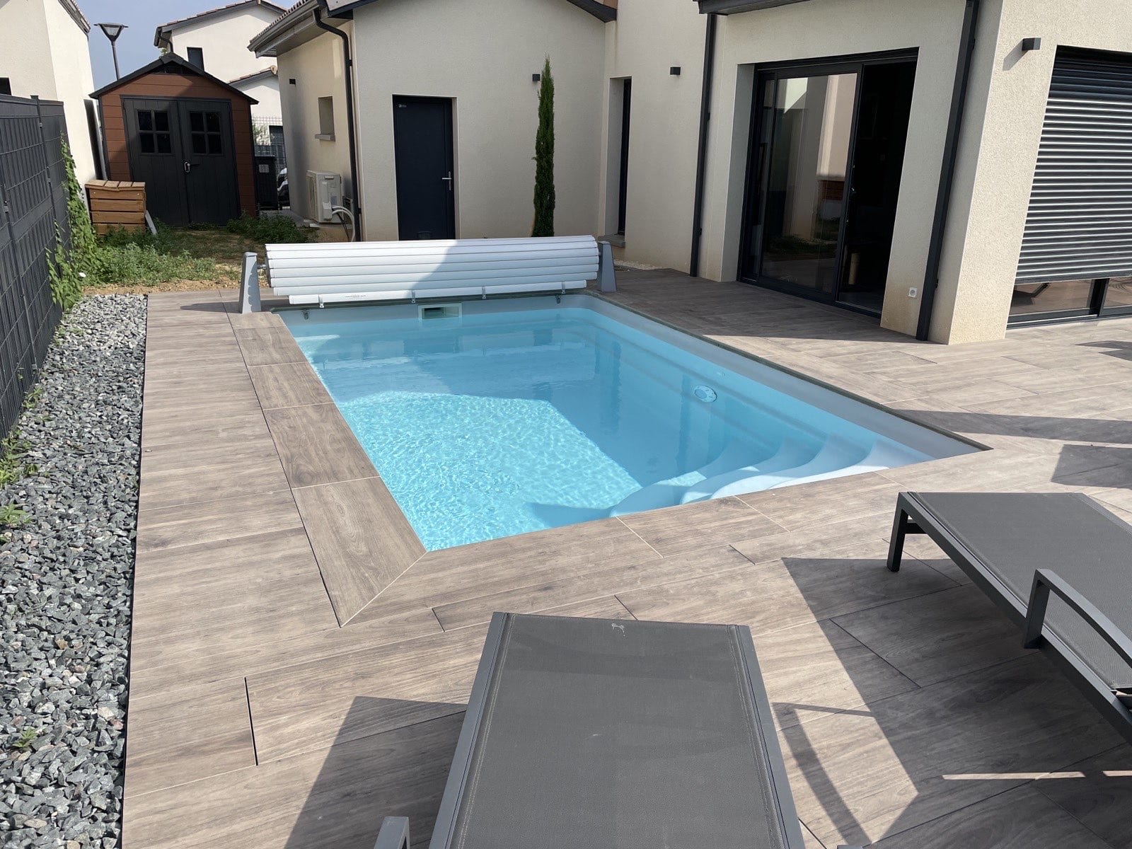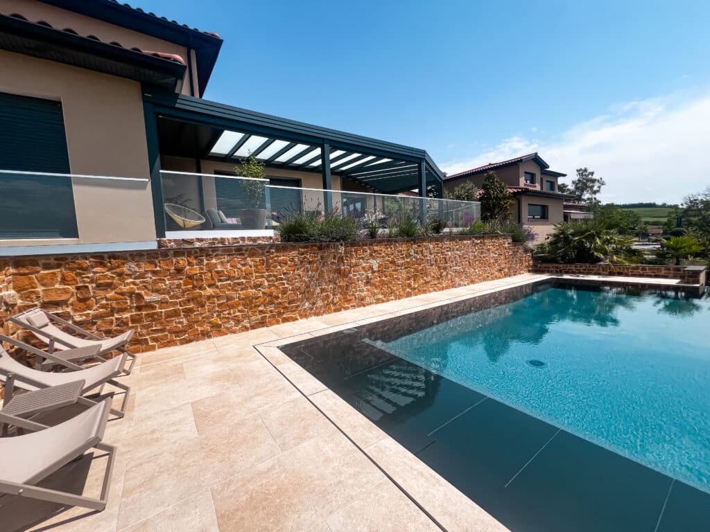 Particulièrement adaptée aux terrains en pente du Val de Saône, la piscine semi-enterrée permet de limiter les travaux de terrassement tout en offrant un rendu visuel très contemporain. Souvent habillée de bois ou de pierre, elle devient un élément architectural à part entière. Elle offre également une sécurité naturelle accrue grâce à la hauteur de ses parois par rapport au sol.