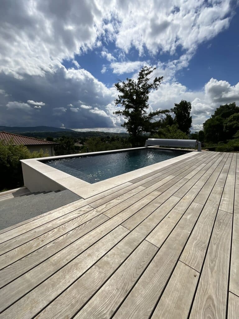 Nos poseurs experts fixent les lames avec des vis en inox, résistantes à la corrosion. Nous portons une attention méticuleuse aux découpes de finition et à l’encadrement des angles. Le résultat ? Une surface plane, sécurisée et d’une esthétique parfaite pour vos soirées d’été à Albigny.